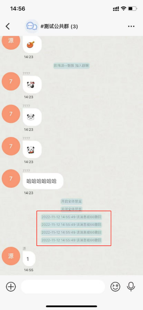 2.2管理员可以对对公共频道中的成员、聊天进行管理,包括成员的添加、删除,消息的撤回,成员的禁言。